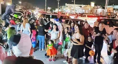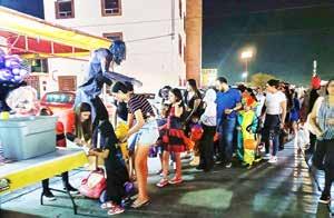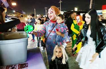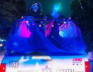Elementos de la Guardia Estatal se sumaron a la actividad de entregar golosinas a niños, niñas y adolescentes que llegaron esta noche a las instalaciones del Complejo de Seguridad Pública a pedir su calaverita.