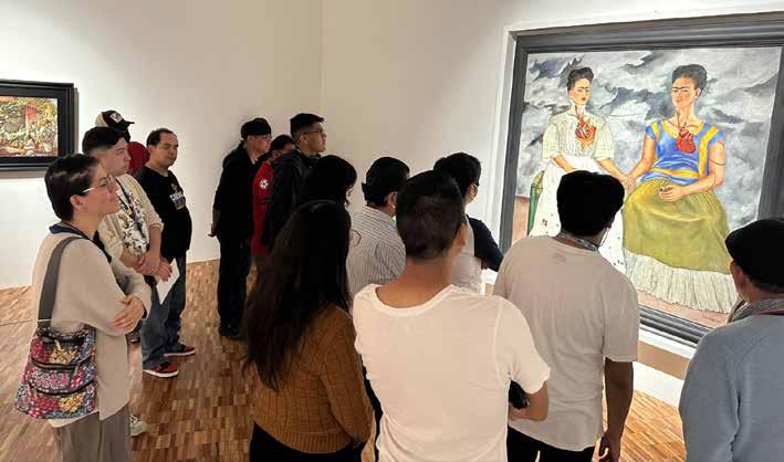 Como segundo eje de trabajo se inició un programa de visitas y recorridos a museos con alumnos de los Centros de Atención a Estudiantes con Discapacidad, cuyo objetivo es promover el conocimiento y apreciación de las expresiones artísticas, el acceso y disfrute de sus derechos culturales y contribuir a crear espacios más inclusivos. El pasado 1º de marzo se realizó la primera visita de estudiantes con discapacidad de CAED al Museo de Arte Moderno. En este recorrido exploraron la arquitectura y el espacio escultórico en una visita mediada; asimismo, abordaron obras de gran relevancia, como Las dos Fridas, de Frida Kahlo; Homenaje a la raza india, de Rufino Tamayo, y el Autorretrato múltiple, de Juan O’Gorman. Finalmente, las y los estudiantes disfrutaron de un picnic en el que además de compartir alimentos, intercambiaron experiencias sobre la visita al recinto. En tercer lugar, la Coordinación Nacional de Artes Visuales impar-