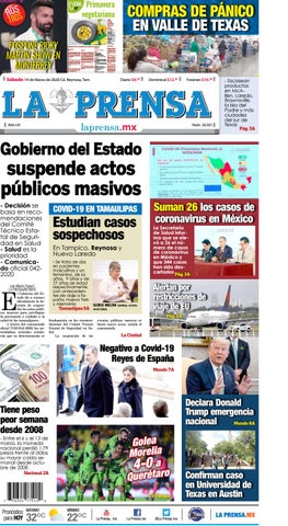 La SecretarĂa de Salud informa que se elevĂł a 26 el nĂşmero de casos de coronavirus en MĂŠxico y que 344 casos han sido descartados PĂĄg. 3A