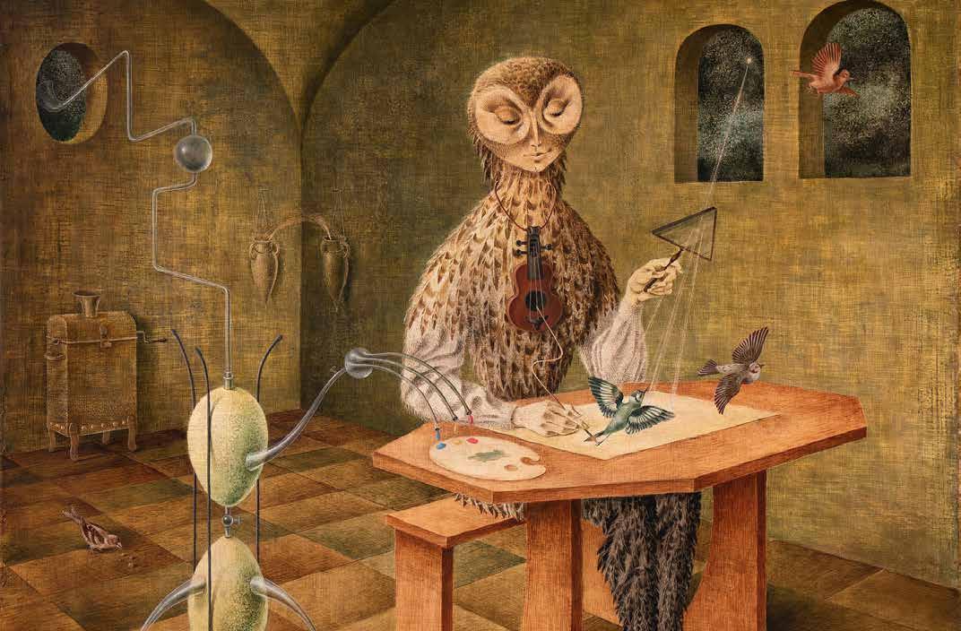 la artista, hoy denominado Fondo Artístico Remedios Varo, en el que hay dibujos preparatorios (como Creación de las aves), que permiten entender mejor la manera en que trabajaba, así como ensayos para piezas que ya formaban parte de la colección. En total, el acervo está conformado por 39 obras y un archivo que contiene, además, fotografías, documentos, un pequeño conjunto de piezas de arte prehispánico, textiles, libros y objetos personales.