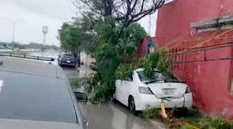 La precipitación pluvial provocó inundaciones en zonas bajas, donde varios automóviles queda-