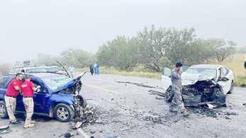 Monterrey, México (14 diciembre 2025) La velocidad y el pavimento mojado ocasionaron que el conductor de una camioneta perdiera el control de su unidad y volcara después de haberse impactado con las barras metálicas de protección, en la Autopista a Reynosa, en Cadereyta.
