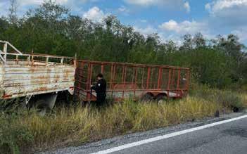 Jiménez, Tamaulipas.— La oportuna intervención de elementos de la Guardia Estatal de Apoyo Carretero permitió prevenir un posible riesgo vial en la Carretera Estatal 75, en el tramo Villa de Casas–Gildardo Magaña–Soto La Marina. Durante recorridos de seguridad y vigilancia correspondientes al Operativo Invierno Seguro 2025 Héroes Paisanos, los agentes detectaron que un vehículo de carga había sufrido el desprendimiento
