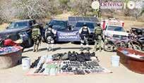 raron 160 dosis de droga, 40 de cristal, siete vehículos, 13 armas largas, cuatro armas cortas, 50 cargadores, mil 688 cartuchos úti-