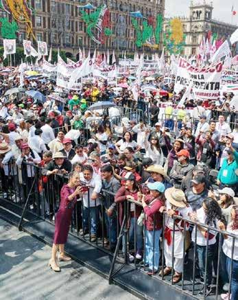 en las plazas a lo largo de toda la República, vamos por el camino correcto. Aquí estamos, de pie, con la fuerza de nuestra historia,