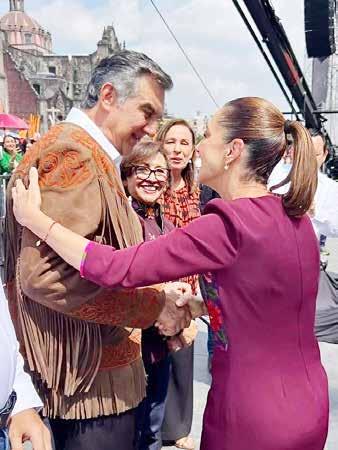 el Humanismo Mexicano, porque no llegamos al Gobierno sólo para administrar, llegamos para seguir transformando la Nación, para el bienestar del pueblo”, expresó. “Andrés Manuel López Obrador fue, es y será siempre un ejemplo de honradez, de austeridad y de profundo amor al pueblo, nunca se rindió, nunca se vendió a los poderosos, nunca se apartó de sus principios y escúchenlo bien, su Presidenta nunca lo hará, porque tenemos convicciones, tenemos principios, porque por más duras que sean las presiones, nosotros sólo hacemos reverencia a uno sólo, al pueblo de México”, agregó.