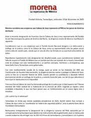 Ante la reciente designación de Francisco García Cabeza de Vaca como representante del Partido Acción Nacional para los países de América del Norte, la dirigencia estatal de Morena manifiesta lo siguiente: