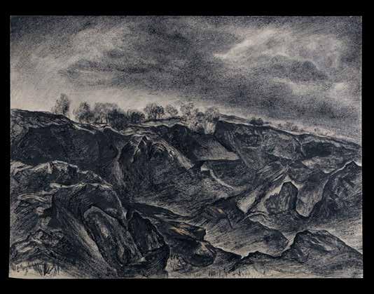 donde conviven vegetación, asentamientos y la cercanía con volcanes y montañas. “En esta pieza se combina realismo y expresionismo, que en otras obras deriva hacia la abstracción sin perder el vínculo con la naturaleza”, agrega la curadora. La obra registra la zona de Santiago Acahualtepec, pueblo originario de Iztapalapa.