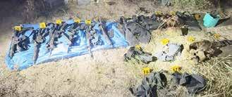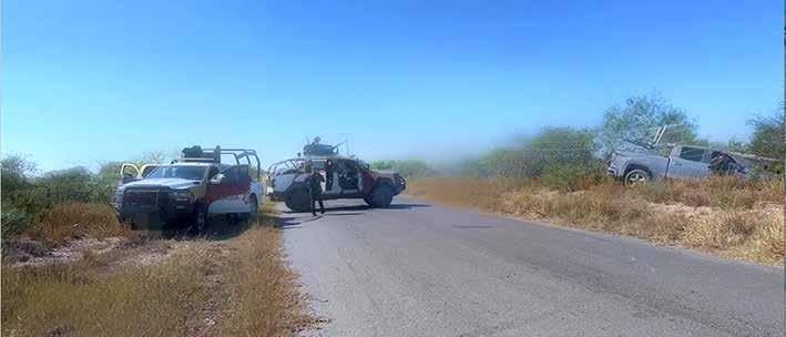 mismo calibre. Cuatro equipos de radio comunicación. Cuatro chalecos tácticos con placas balísticas. Una cubeta con 40 ponchallantas. El vehículo GMC Sierra, con reporte de robo en el extranjero. Durante la agresión, una unidad de la Guardia Estatal resultó con daños menores por impacto de proyectiles, sin que se registraran lesionados entre