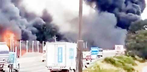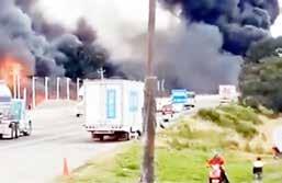Cierran la México-Puebla por incendio de dos pipas