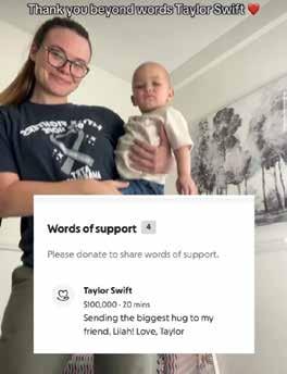 Taylor Swift hizo una generosa contribución de 100 mil dólares a la campaña de GoFundMe de Lilah, una niña que enfrenta un cáncer cerebral agresivo.