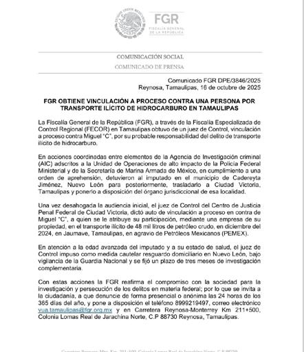 Un Juez de Control emitió la resolución después de que el Representante Social presentara datos de prueba suficientes que acreditan la probable responsabilidad de los imputados en los hechos ocurridos el 13 de julio de 2025, en el interior de un domicilio ubicado en la Colonia Guadalupe Mainero, de esta ciudad.
