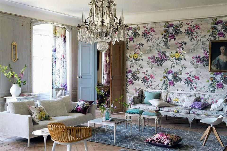 Se caracteriza por muebles ornamentados, estampados florales, molduras detalladas y una mezcla ecléctica de elementos decorativos.