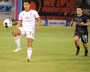 Ríos encendió los motores y alcanzó el balón suelto un milisegundo antes que el defensa de Phoenix, John Stenberg, empujando el balón suelto al espacio detrás de la línea defensiva de Rising. Uno a uno con el portero de Phoenix, Rocco Ríos Novo, Ríos de Las Vegas se inclinó