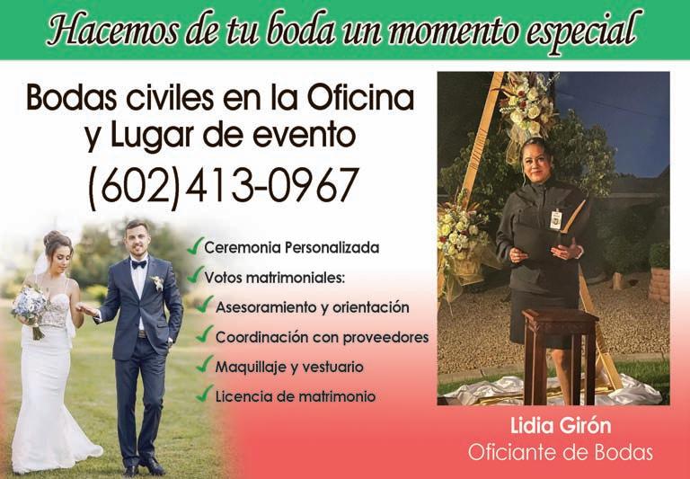 Jueves 5 de octubre de 2023 2A La opinión de nuestros colaboradores no refleja necesariamente el criterio de esta Empresa Editorial. Se prohibe la reproducción total o parcial del contenido de PRENSA ARIZONA, fotos, textos, anuncios e ilustraciones sin previa autorización del Director General de esta Casa Editorial. PRENSA ARIZONA is a publication published every Thursday for the Hispanic community of Arizona. The opinion of our staff does not necessarily reflect the belief or our Editorial Company. No portion of the articles, photos or ilustration may be reproduced in whole or part by any means without the express permission of the General Director of PRENSA ARIZONA. prensaarizona @arizonaprensa prensa_arizona @prensaarizona @prensaarizona www.prensaarizona.com (602) 975 8822 CONTACTO / CONTACT