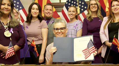 La trabajadora social y gobernadora Katie Hobbs se unió a líderes policiales y defensores de la comunidad para reconocer octubre como el Mes de Concientización sobre la Violencia Doméstica y firmó una Orden Ejecutiva que da continuidad a la Comisión del Gobernador para Prevenir la Violencia de Pareja y de Género.