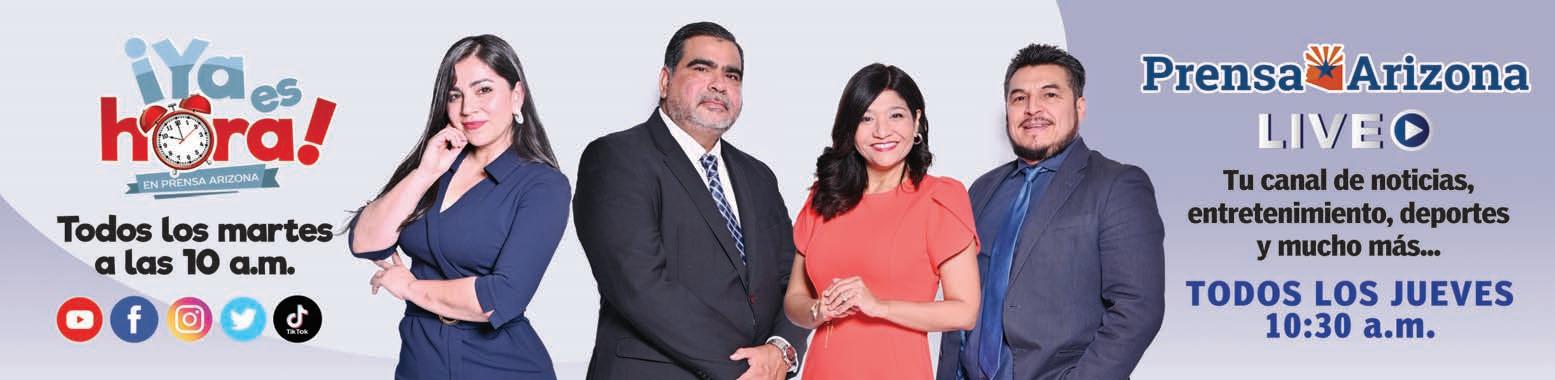 Jueves 16 de marzo de 2023 2A La opinión de nuestros colaboradores no refleja necesariamente el criterio de esta Empresa Editorial. Se prohibe la reproducción total o parcial del contenido de PRENSA ARIZONA, fotos, textos, anuncios e ilustraciones sin previa autorización del Director General de esta Casa Editorial. PRENSA ARIZONA is a publication published every Thursday for the Hispanic community of Arizona. The opinion of our staff does not necessarily reflect the belief or our Editorial Company. No portion of the articles, photos or ilustration may be reproduced in whole or part by any means without the express permission of the General Director of PRENSA ARIZONA. prensaarizona @arizonaprensa prensa_arizona @prensaarizona @prensaarizona www.prensaarizona.com (602) 975 8822 CONTACTO / CONTACT