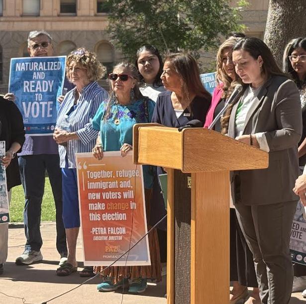 Petra Falcón, la directora del grupo de defensa de los inmigrantes Promesa Arizona, añadió que los ciudadanos recién naturalizados podrían ser una fuerza de equilibrio en las elecciones de noviembre y una fuerza significativa para el cambio más allá de eso.