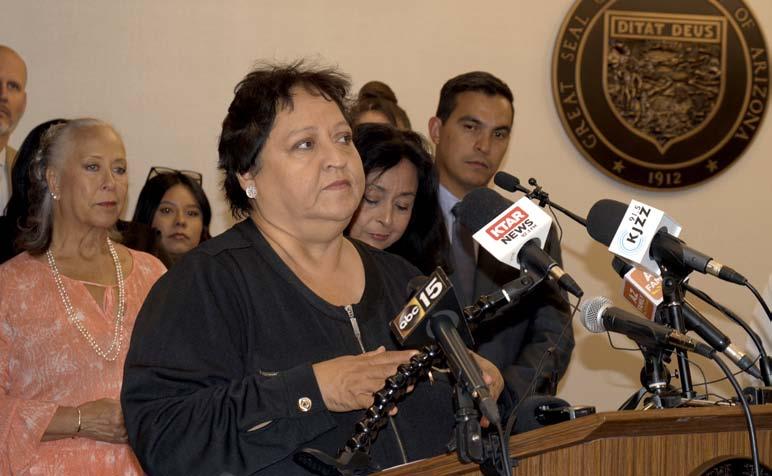 Igualmente presentes, Enrique David Mazlum, de Unidos US Arizona; Petra Falcón, de Promise Arizona y la reconocida activista Lydia Guzmán, de Chicanos Por La Causa.