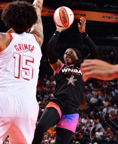 Cuando Ogunbowale terminó en el tercer cuarto, las All-Stars de la WNBA habían convertido un déficit de dos puntos en el medio tiempo en una ventaja de 88-79. Rompió el récord general de anotaciones del Juego de Estrellas de Jewell Loyd de 31 establecido el año pasado con un triple al final del último cuarto.
