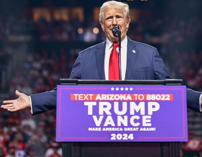 Durante un mitin de campaña en el Desert Diamond Arena de Glendale, el expresidente y criminal convicto Donald Trump abordó el tema de la frontera y presentó a Robert Kennedy Jr. que horas antes se había sumado a su campaña.