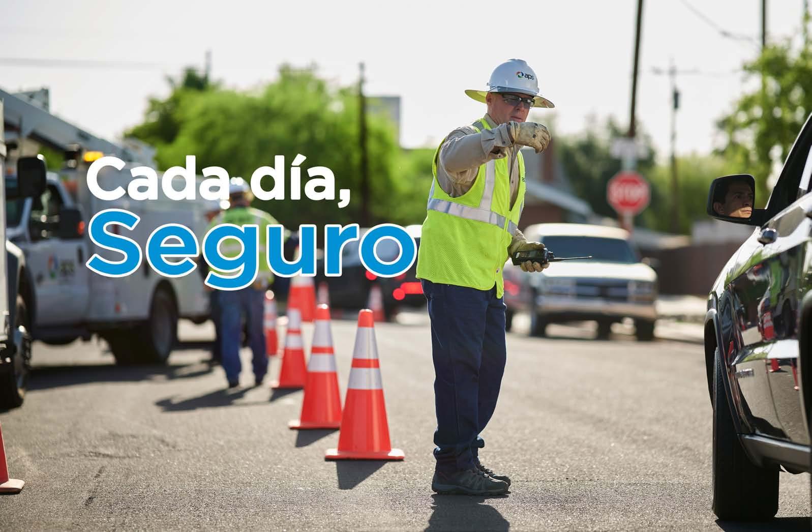 Cada día, la seguridad es nuestra prioridad. En APS, hacemos mejoras constantes a nuestro sistema eléctrico para mantener a nuestras cuadrillas y clientes seguros cerca de la electricidad. Recuerda estos consejos: pon tapas de seguridad en los enchufes. Llama al 811 antes de excavar para marcar la ubicación de cables subterráneos. Si ves una línea eléctrica caída, mantén al menos 100 pies de distancia y llama al 911. Para más formas de mantenerte seguro cerca de la electricidad, visita aps.com/brillante