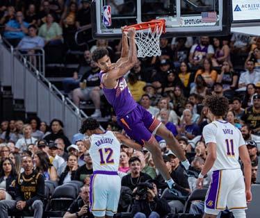 Los Phoenix Suns comenzaron su pretemporada con una sólida victoria sobre Los Angeles Lakers, venciendo 118-114 en un emocionante partido en el Crypto.com Arena. Los Lakers contaron con la presencia de la estrella LeBron James y su hijo Bronny, quienes ofrecieron un espectáculo adicional para los aficionados en una noche especial. Los reflectores sin duda estuvieron enfocados en Tyus Jones, el nuevo armador de los Suns, que terminó la noche con 9 puntos y 6 asistencia, sin embargo el reserva Collin Gillespie se despachó con 12 puntos y 5 asistencias; curiosamente el máximo anotador de Phoenix fue Josh Okogie que aportó 15 unidades.