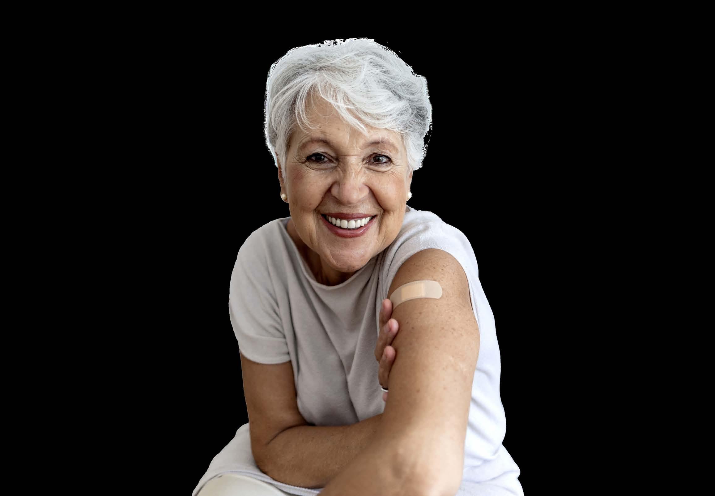 Anímala a vacunarse contra la gripe, el COVID-19 y el VRS que pueden enfermarla gravemente.