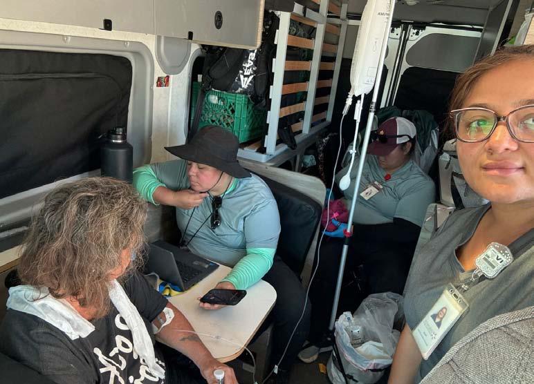 El equipo de Phoenix busca pacientes en campamentos para personas sin hogar en lechos de ríos secos, callejones sofocantes y a lo largo de los canales que llevan agua al área de Phoenix. Alrededor del 15% está lo suficientemente deshidratado como para recibir un goteo de solución salina.