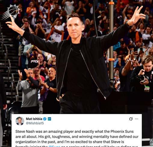 “Steve Nash fue un jugador increíble y representaba la esencia de los Phoenix Suns”, escribió Ishbia en redes sociales.