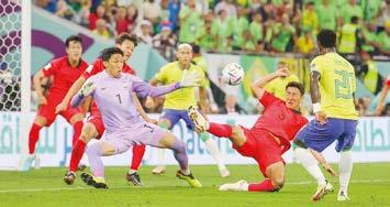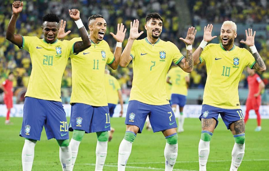 Demostrando que es un serio can didato para ganar el Mundial de Qa tar 2022, la selección brasileña goleó por 4-1 a Corea del Sur y quedó en focado en su próximo partido ante Croacia este viernes por los cuartos de final. Vinícius (6), Neymar (12’ p.), Richarlison (28’) y Paquetá (36’) mar caron para el ‘Scratch’, mientras que Seung-Ho descontó a los 75’.