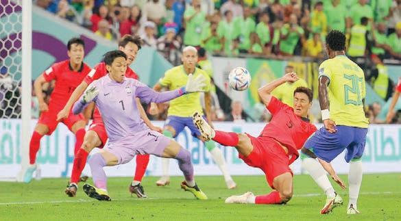 Demostrando que es un serio can didato para ganar el Mundial de Qa tar 2022, la selección brasileña goleó por 4-1 a Corea del Sur y quedó en focado en su próximo partido ante Croacia este viernes por los cuartos de final. Vinícius (6), Neymar (12’ p.), Richarlison (28’) y Paquetá (36’) mar caron para el ‘Scratch’, mientras que Seung-Ho descontó a los 75’.