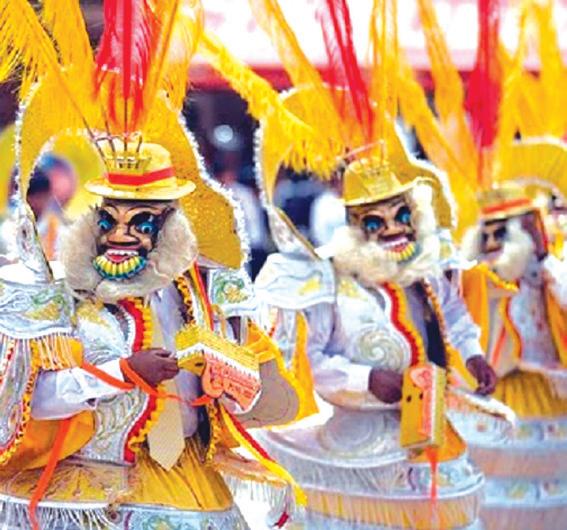 tica un baile donde los danzari nes portan máscaras con rostros negros y robustos trajes colori dos. Los registros señalan que los primeros conjuntos modernos de este baile aparecieron a princi pios del siglo pasado.