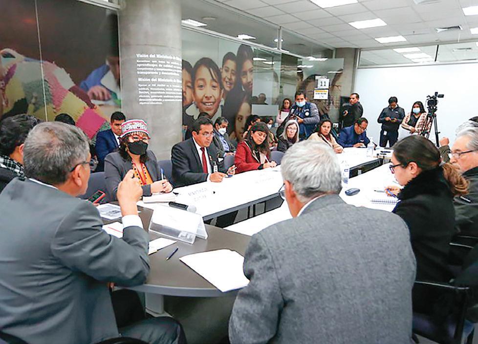unión donde se trató sobre el proceso de encargatura de cargos directivos y la re solución viceministerial N° 118-2022-MINEDU. Ahí, partici paron, además del ministro Serna, representantes del MINCUL, la Defensoría del Pueblo, AIDESEP, el Consejo Nacional de Educación y el Foro Educativo.