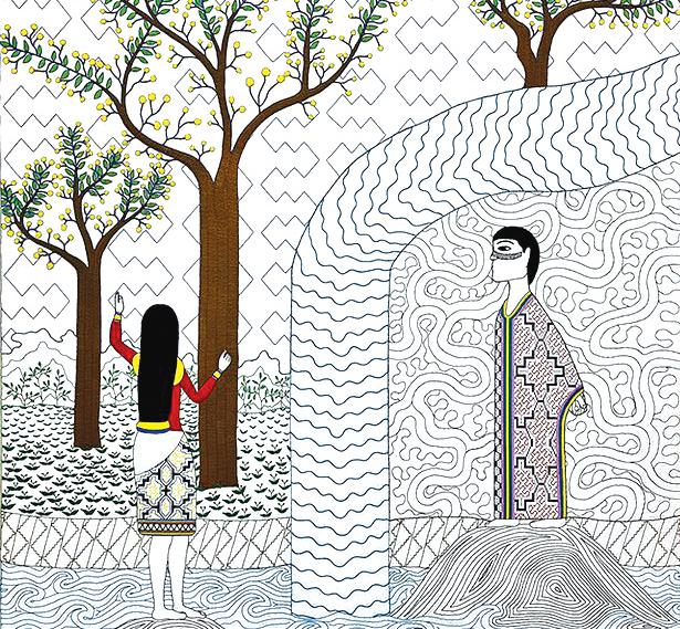 nes de sus abuelos y en las experiencias visionarias de los sabios del pasado, los Merayabo. Por lo tanto, es fruto de la complementariedad y la colaboración de una pareja dedicada al arte, la investi gación etnográfica, la poesía y el rescate de los saberes ancestrales del pueblo shi pibo-konibo de la Amazonía peruana. Chonon Bensho dice sobre su traba jo: “El arte indígena contemporáneo asimila algunas técnicas del arte occi dental, pero no pierde su diferencia y sensibilidad. Aunque es un arte actual,