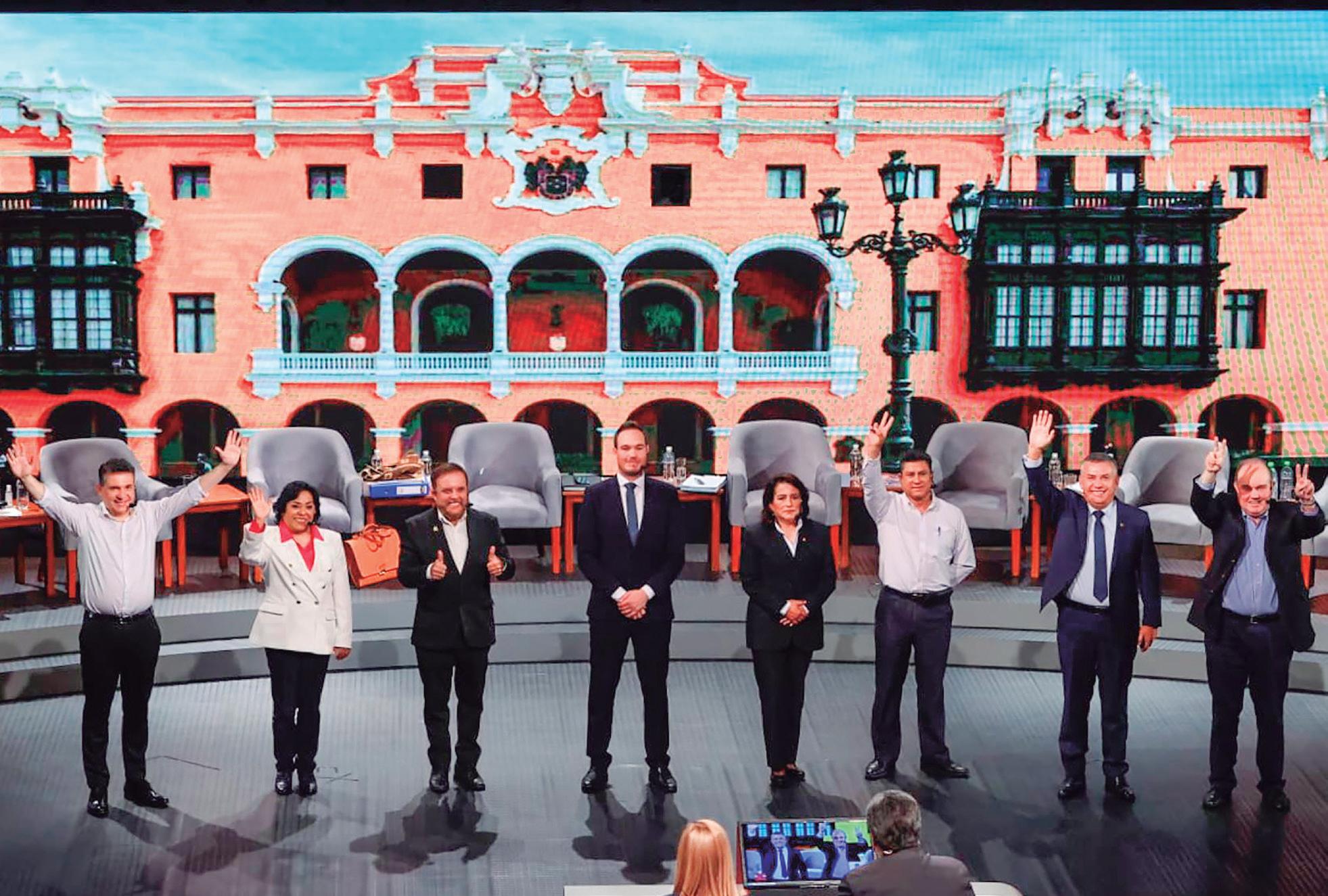 Ashí estuvieron Daniel Urresti de Podemos Perú, Rafael López Aliaga de Re novación Popular, George Forsyth de Somos Perú, Gonzalo Alegría de Juntos por el Perú, Elizabeth León de Frente Esperanza, Yuri Castro de Perú Libre y María Elena Soto de Avanza País.