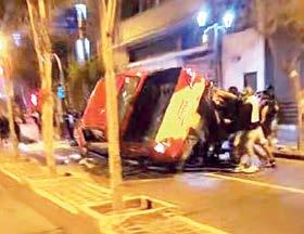 golpearon al conductor, una personas de la tercera edad. No contentos con ello, voltearon la móvil de Exitosa con el conductor dentro. “Me agarró una turba a matar. Esa gente está loca. Me han destrozado la camioneta, me la han volteado, me han tirado