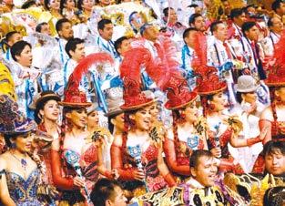 destacadas cantantes pune ñas Miriam y Silvia Echarri, quienes deleitarán con popu lares temas como “Paja bra va” y “Mamita Candelaria”. El segundo bloque ofre cerá bailes y comparsas ejecutadas con elegantes y coloridos vestuarios cos tumbristas. Resaltan dan zas del altiplano, como la “Diablada” o los alegres “Ca porales”. ❖