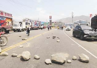 Supervisión Electrónica de la Sutran, Renzo Torres, quien manifestó que los manifestantes bloquean con piedras y palos la vía; mientras que, en las zonas consideradas restringidas, el pase vehicular es por un carril. ❖