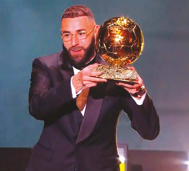 Benzema, que llega a la cúspide cuan do le quedan dos meses para cumplir los 35 años, recibió el trofeo de manos de su compatriota Zinedine Zidane, ganador del trofeo en 1998 y su entre nador durante cuatro temporadas en el Real Madrid.