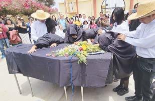 misa en su honor, la última de este año, oficiada por el monseñor Carlos Castillo. En plena misa, un joven se descompensó, fue auxiliado por miembros de la Herman dad del Señor de los Milagros y llevado en camilla a un puesto de atención, pero no hubo complicaciones. En su recorrido no faltaron los cánticos, petición de mi lagros y pago de estos. A su ingreso a su última morada hasta el otro año, los fieles despidieron santo patrón entre palmas.❖