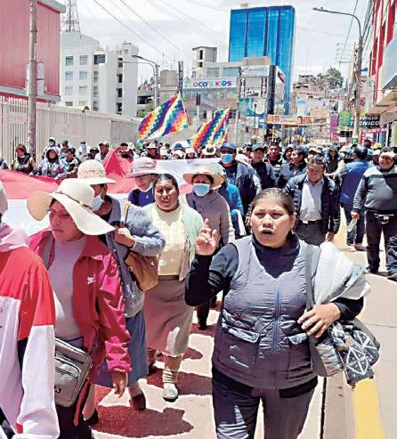 DINA SE QUEDA HASTA EL 2026 DIRECTOR: LUIS ANGELES LAYNES / VIERNES 9 DE DICIEMBRE DE 2022 / AÑO: 7 / Nº DE EDICIÓN: 2510 / www.exitosanoticias.pe PRECIO S/ 1.50 AFIRMA QUE ELECCIONES FUERON HASTA ESE AÑO Y DEBE RESPETARSE LA CONSTITUCIÓN ❖ PRESIDENTA INICIÓ REUNIONES CON DIFERENTES BANCADAS. ❖ NO DECIDE AÚN QUIÉN SERÁ EL JEFE O JEFA DE SU GABINETE. ❖ MANIFESTANTES ADEMÁS PIDEN NUEVAS ELECCIONES GENERALES. PÁG. 6 EN LA JOYA SE BLOQUEÓ LA PANAMERICANA AFECTANDO A CIENTOS DE VEHÍCULOS EL SUR PROTESTA Y EXIGE EL CIERRE DEL CONGRESO PÁG. 15 PÁG. 16 MANEJÓ EBRIO UN BUS DE AREQUIPA A TACNA TRES MUERTOS EN LA VÍA PUNO-TACNA ESCOLARES VIAJABAN EN UNO DE LOS BUSES QUE CHOCÓ POR ALCANCE CHOFER PUSO EN RIESGO LA VIDA DE 50 PASAJEROS PÁG. 15 HOMICIDA ERA BUSCADO HACE 17 AÑOS CAE ASESINO QUE QUEMÓ VIVO A VARÓN EN EL COLLAO EDICIÓN SUR PÁG. 5 PÁG. 19 PNP INTERVIENE A TRES PERSONAS EN ESTABLECIMIENTO EL JUEVES VERÁ DEMANDA DE INCONSTITUCIONALIDAD ALLANAN LOCAL DONDE MUJER ABORTÓ Y MURIÓ TC DEFINIRÁ DEVOLUCIÓN A TODOS LOS FONAVISTAS