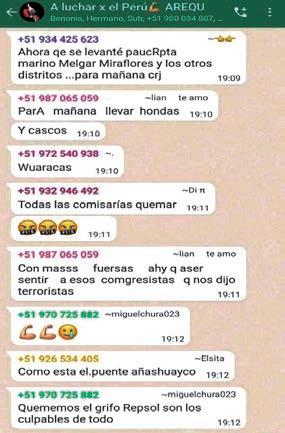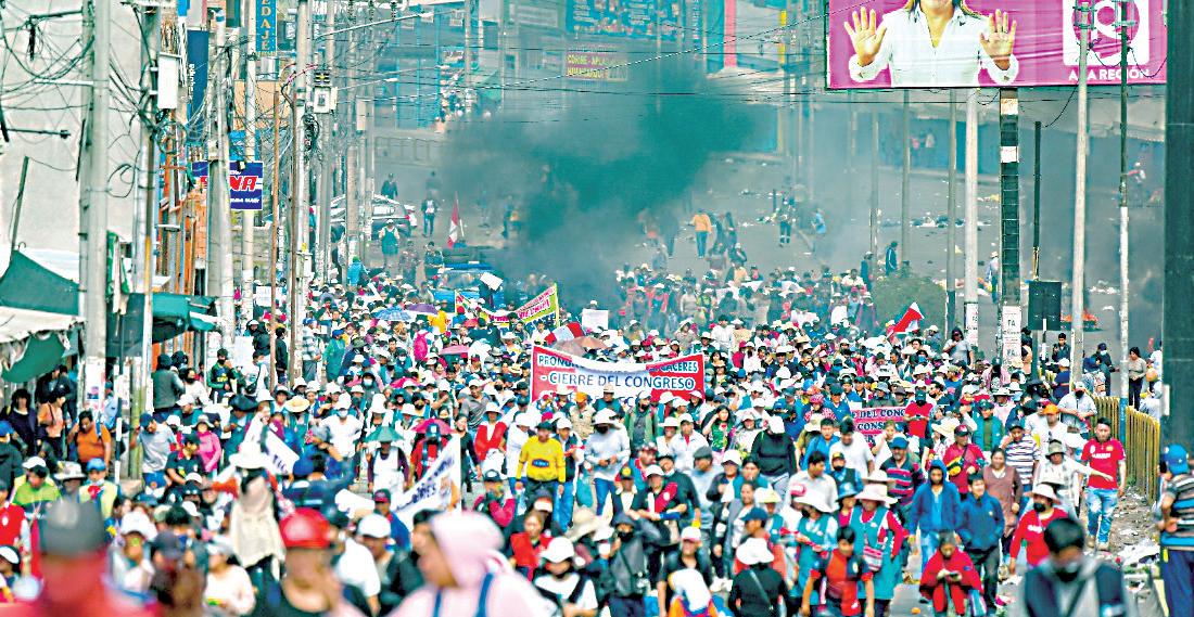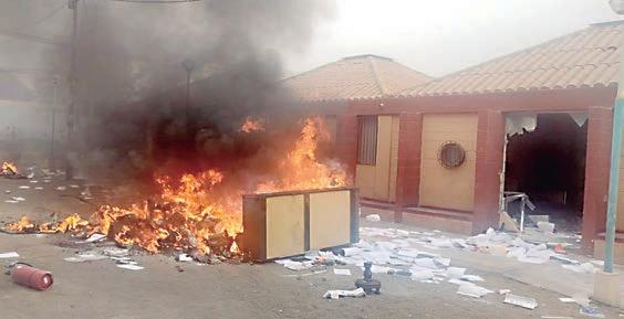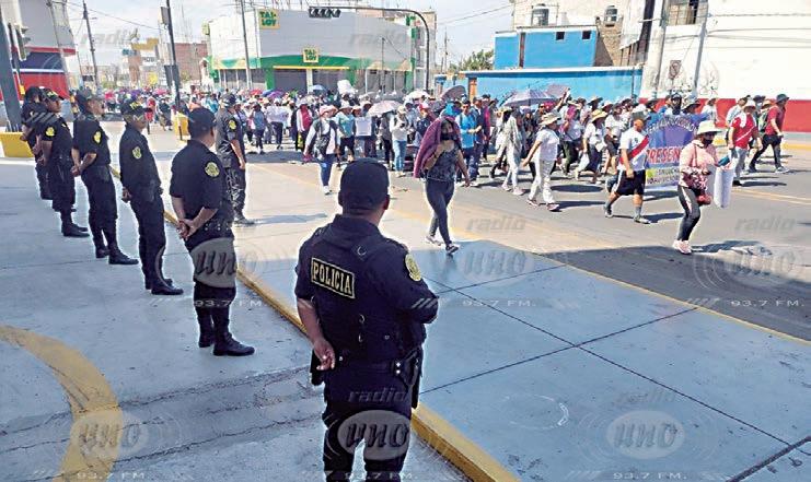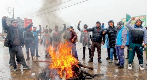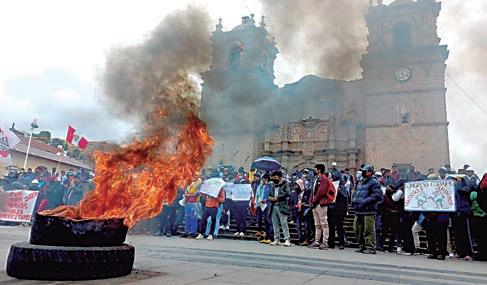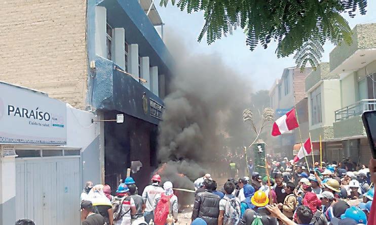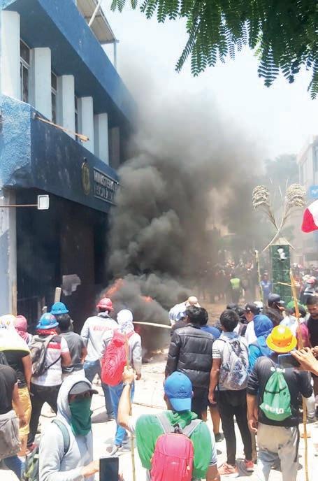 con piedras y palos el frontis del Gobierno Regional de Apurímac. La Policía Nacional envió algunos efectivos luego de los incidentes para controlar la situación. En Arequipa, manifestantes atacaron las instalaciones de la empresa Laive en el sector de El Pedregal, distrito de Majes, provincia de Caylloma y en Camaná quemaron sede del Ministerio Público. ❖