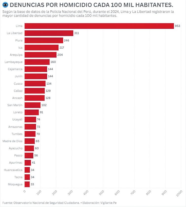 registraron aproximadamente 5 homicidios por día.Lima y La Libertad son las regiones