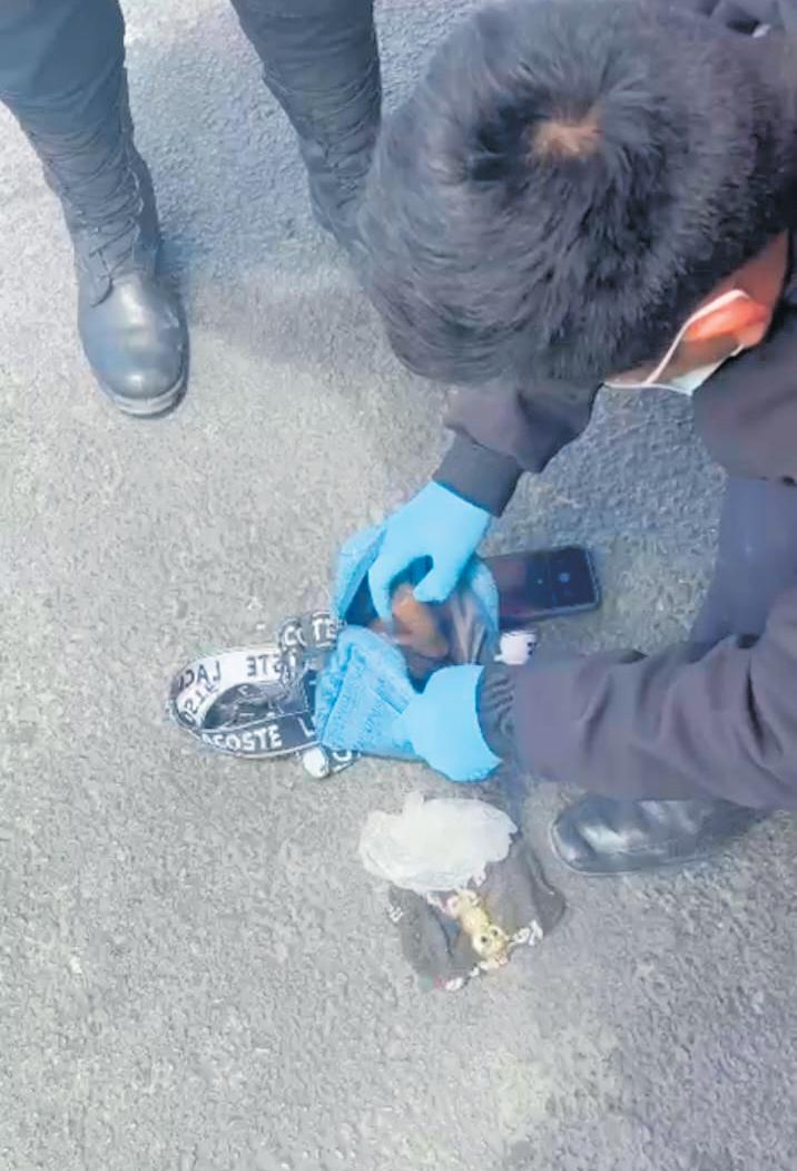 Durante la intervención, los sospechosos arrojaron un morral con un revólver en su