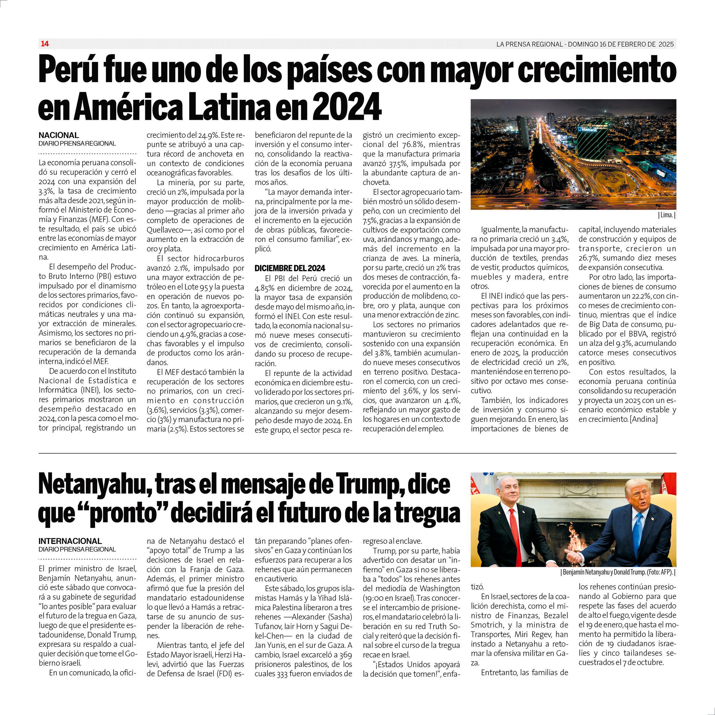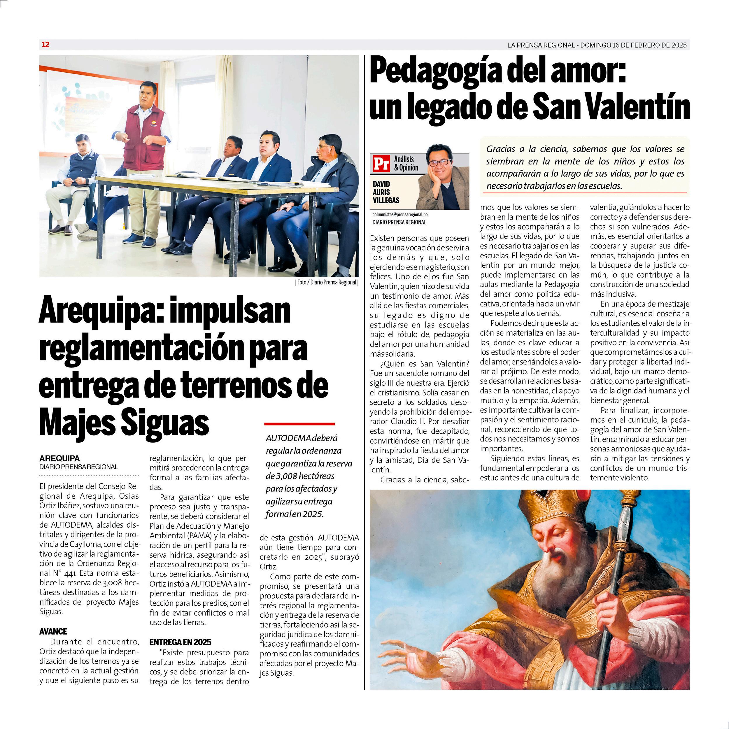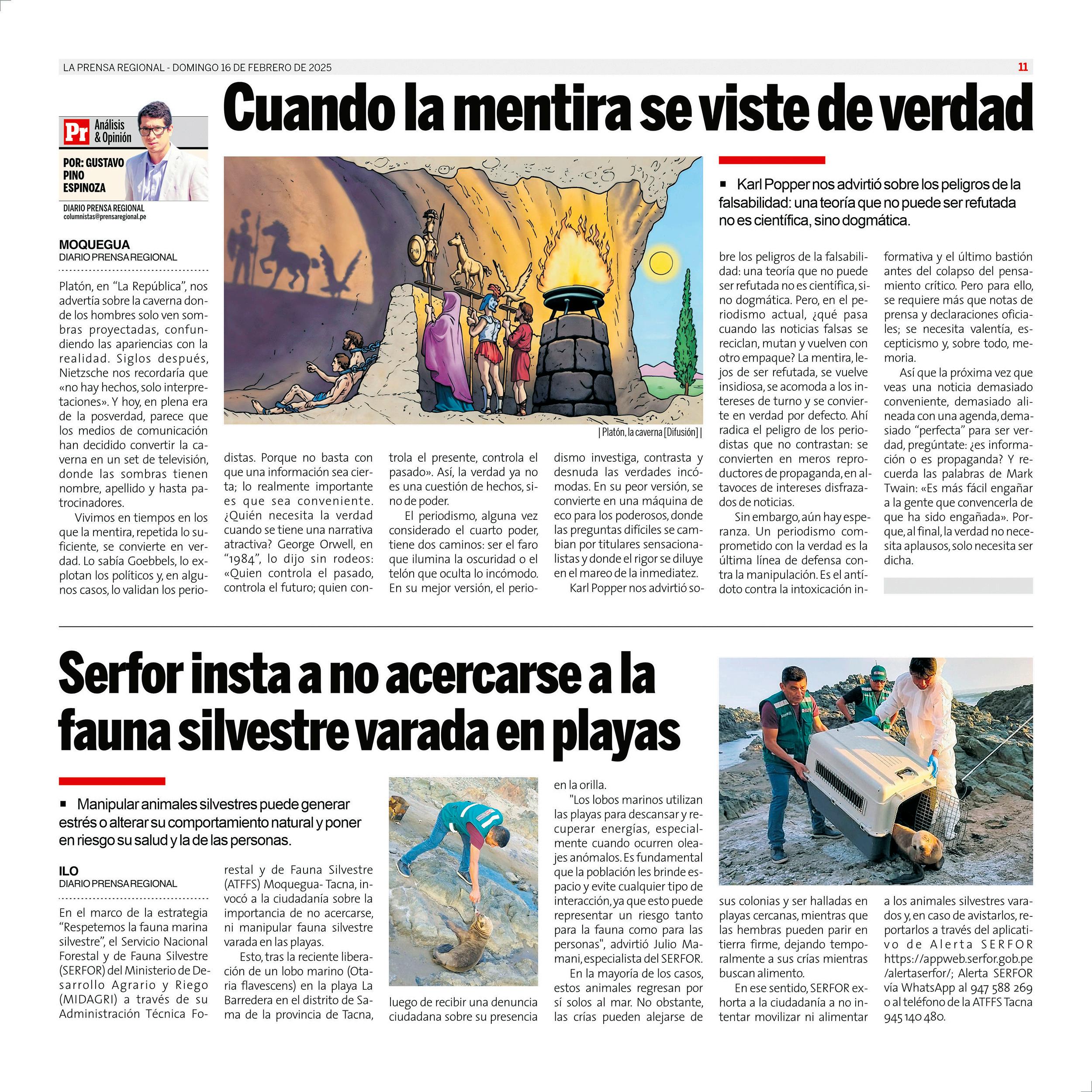 La Prensa Regional - Domingo 16 de febrero de 2025 - https://prensaregional.pe/ | Moquegua, Ilo, Pacocha, El Algarrobal, Samegua, Torata, Carumas. Omate. Ichuña. Islay, Matarani, Mollendo, Mejia, Cocachacra. San Antonio. Tia María, Alberto Huaracha Jorge UNAM, Sunass, IPE, Anibal Quiroga