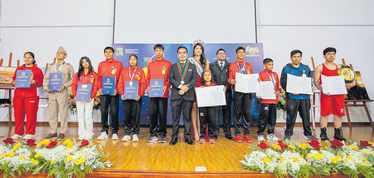 En el ámbito del Deporte, recibieron distinción Fermín Aquinto Montes, Andrés Huanca Calizaya e Iván Cruz Cuentas Mamani. También fueron reconocidos deportistas escolares como Luka Caleb Casanova Vera, Angelina Valeska Cutipa Alvarado, José FabioFloresSánchez,Mariana Valentina Tejada Choquehuanca,MateoAbdelMotta Alvarado,Camila Esperanza Ibañez Ruiz, Lanzair Alessan-