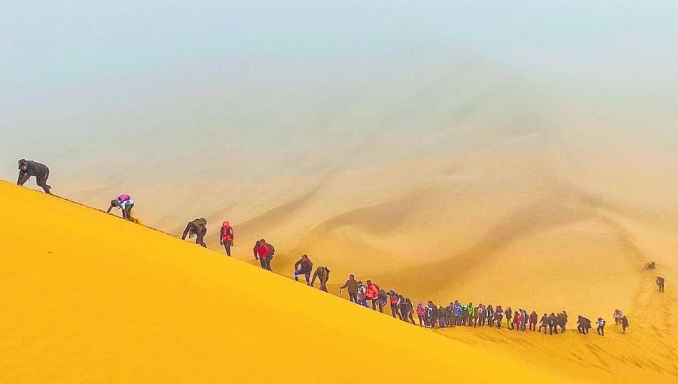 Algunos de los caminantes fueron visitantes de la ciudad de Tacna y de Moquegua, quienes con mucho esfuerzo y asombrados por esta maravilla natural, lograron trepar a los grandes cúmulos de arena ycoronaralgunasdelasinnumerables grandes crestas del “MardeArena”situadasentre los1200y1550m.s.n.m.