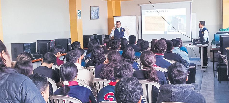 La actividad estuvo a cargo del fiscal Zoilo López del Carpio,titular del Primer Despachodela Fiscalía Provincial Corporativa Especializada en Delitos de Lesiones y Agresiones contra las Mujeres y los Integrantes del Grupo Familiarde Ilo.Elmagistradoexplicó a los escolares los distintostiposdeviolencia,laimportanciadeidentificarlosestereotipos de género y cómo interponer una denuncia an-