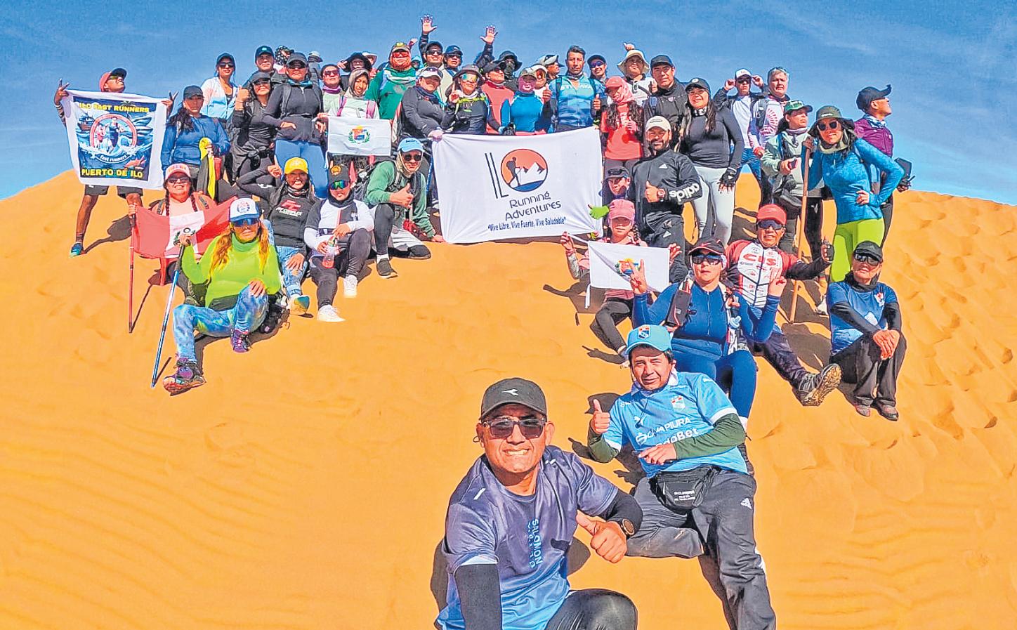 Unos 67 integrantes del grupo de “Ilo Running Adventures”,amantesdelaactividadfísica y diversos deportes, recorrieron en la modalidad de trekking,más de 10 km por las grandescrestasydoradasarenas de las “Dunas de Ilo”, situadas en el distrito de “El Algarrobal”,ProvinciadeIlo.